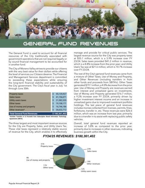the level of services our Citizens deserve. The Financial The rest of the City’s general fund revenues came from