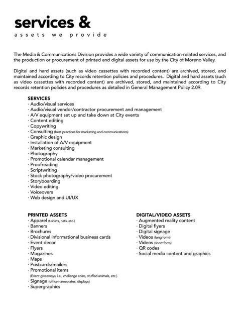 the production or procurement of printed and digital assets for use by the City of Moreno Valley.