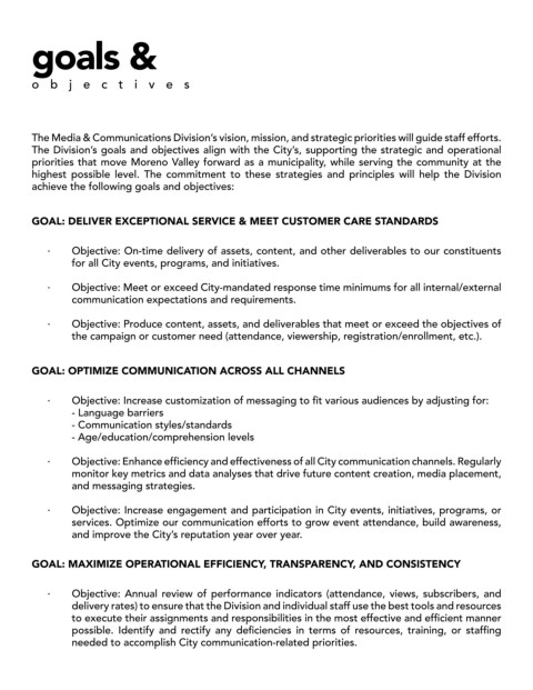 ·    Objective: Enhance efficiency and effectiveness of all City communication channels. Regularly