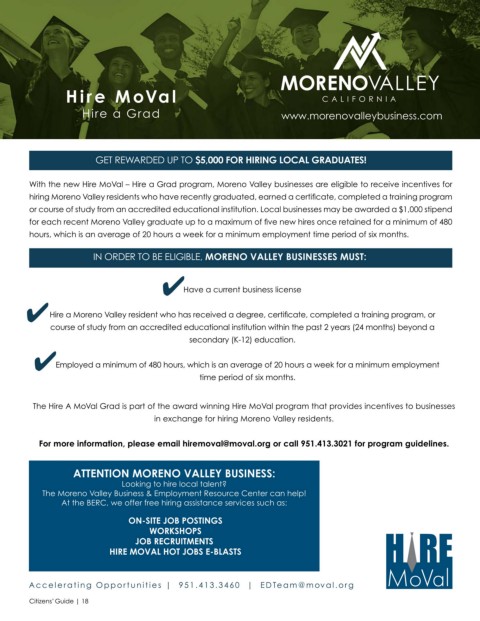 for each recent Moreno Valley graduate up to a maximum of f ve new hires once retained for a minimum of 480