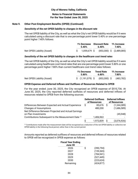 For the year ended June 30, 2025, the City recognized an OPEB expense of $515,736. At