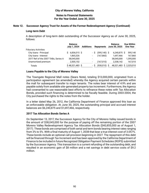 Note 12. Successor Agency Trust for Assets of the Former Redevelopment Agency (Continued)