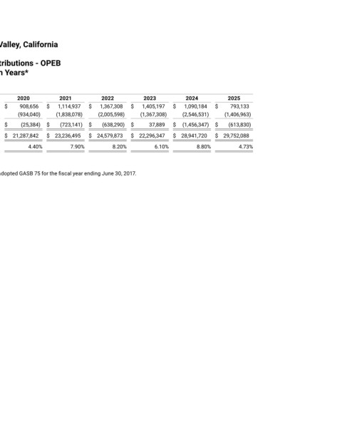 * Historical information is required only for measurement periods where GASB 75 is applicable. The City adopted GASB 75 for the fiscal year ending June 30, 2017.