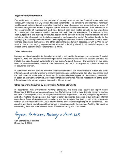 December 5, 2025 on our consideration of the City’s internal control over financial reporting and on