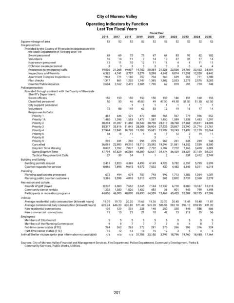 Sources: City of Moreno Valley Financial and Management Services, Fire Department, Police Department, Community Development, Parks &