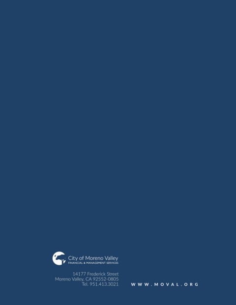 City of Moreno Valley FINANCIAL & MANAGEMENT SERVICES 14177 Frederick Street Moreno Valley, CA 92552-0805 Tel. 951.413.3021 WWW .MO V AL. OR G 202