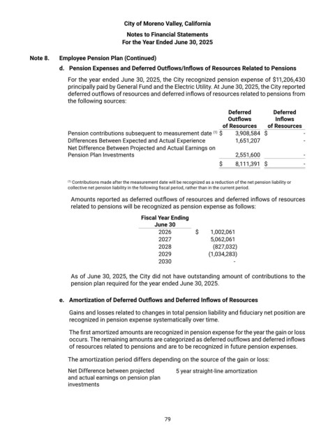 d. Pension Expenses and Deferred Outflows/Inflows of Resources Related to Pensions